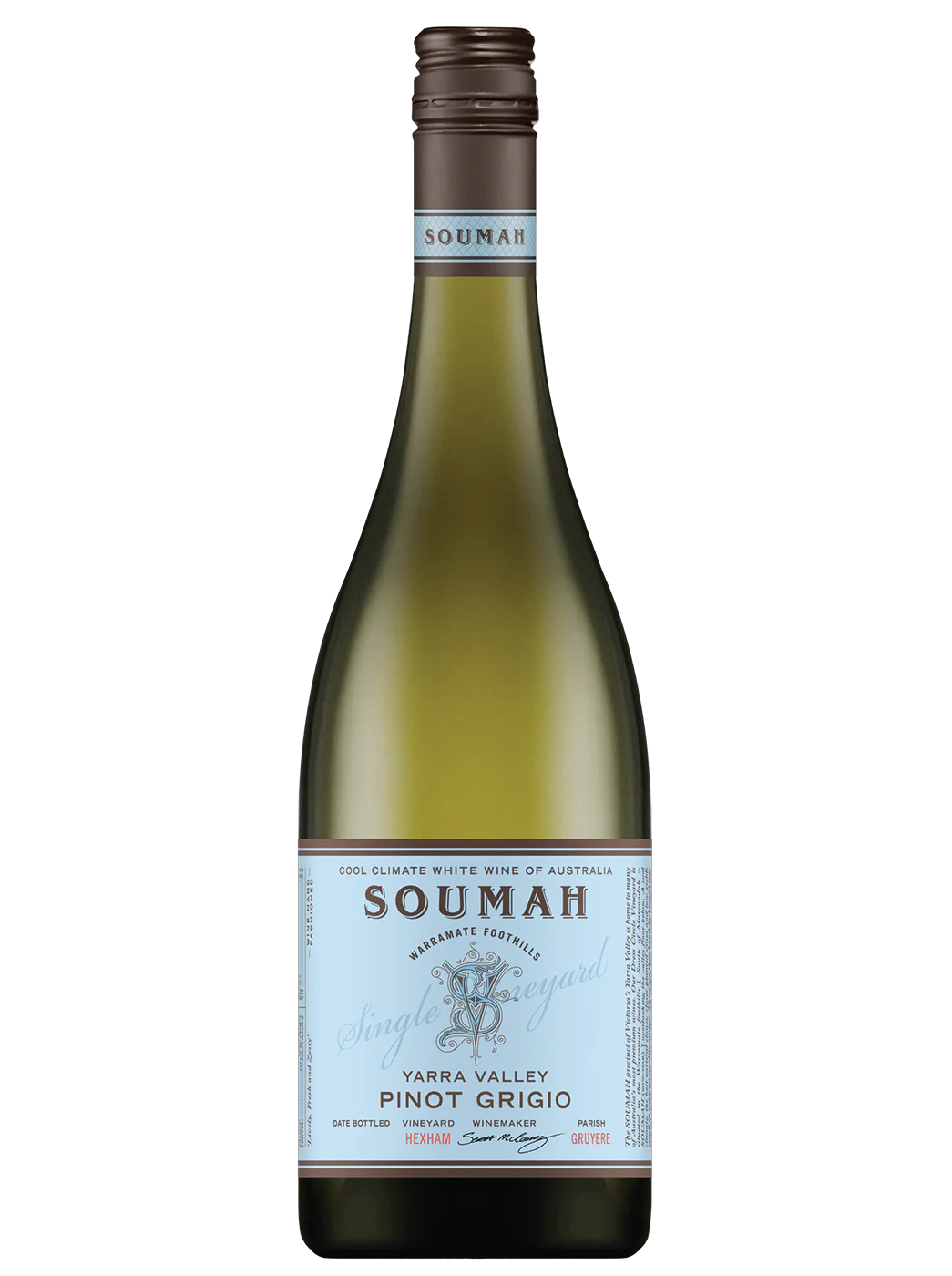 Soumah Estate, Yarra Valley. A crisp, clean expression of Pinot Grigio from Soumah’s collection of northern Italian varieties. This wine combines traditional Italian winemaking with Yarra Valley terroir, offering fresh citrus notes and minerality.
